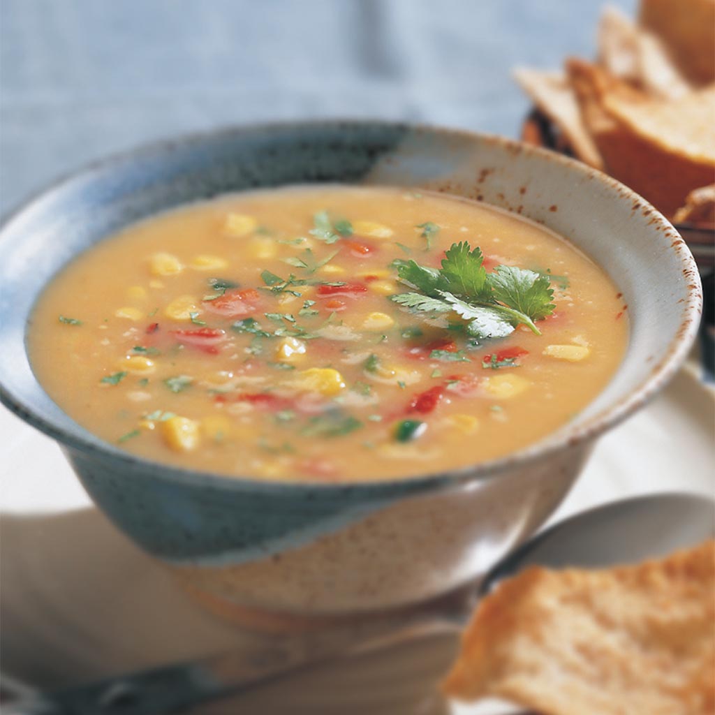 Eating dark orange and red vegetables, such as sweet potatoes and red peppers, helps to increase your intake of vitamins A and C and antioxidants. Serve this colorful and tasty soup with whole-wheat pita bread and hummus.