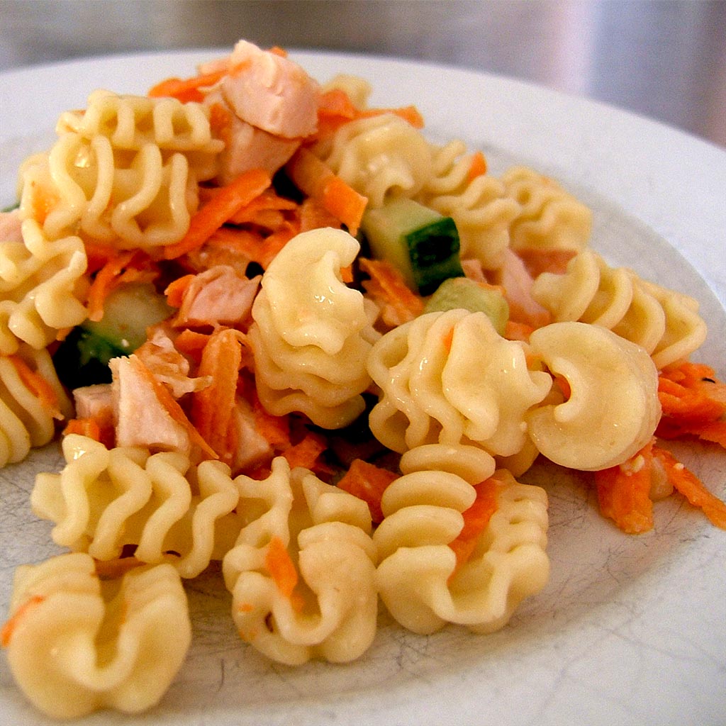 Try different vegetables like chopped peppers, celery, broccoli or cauliflower in the salad.