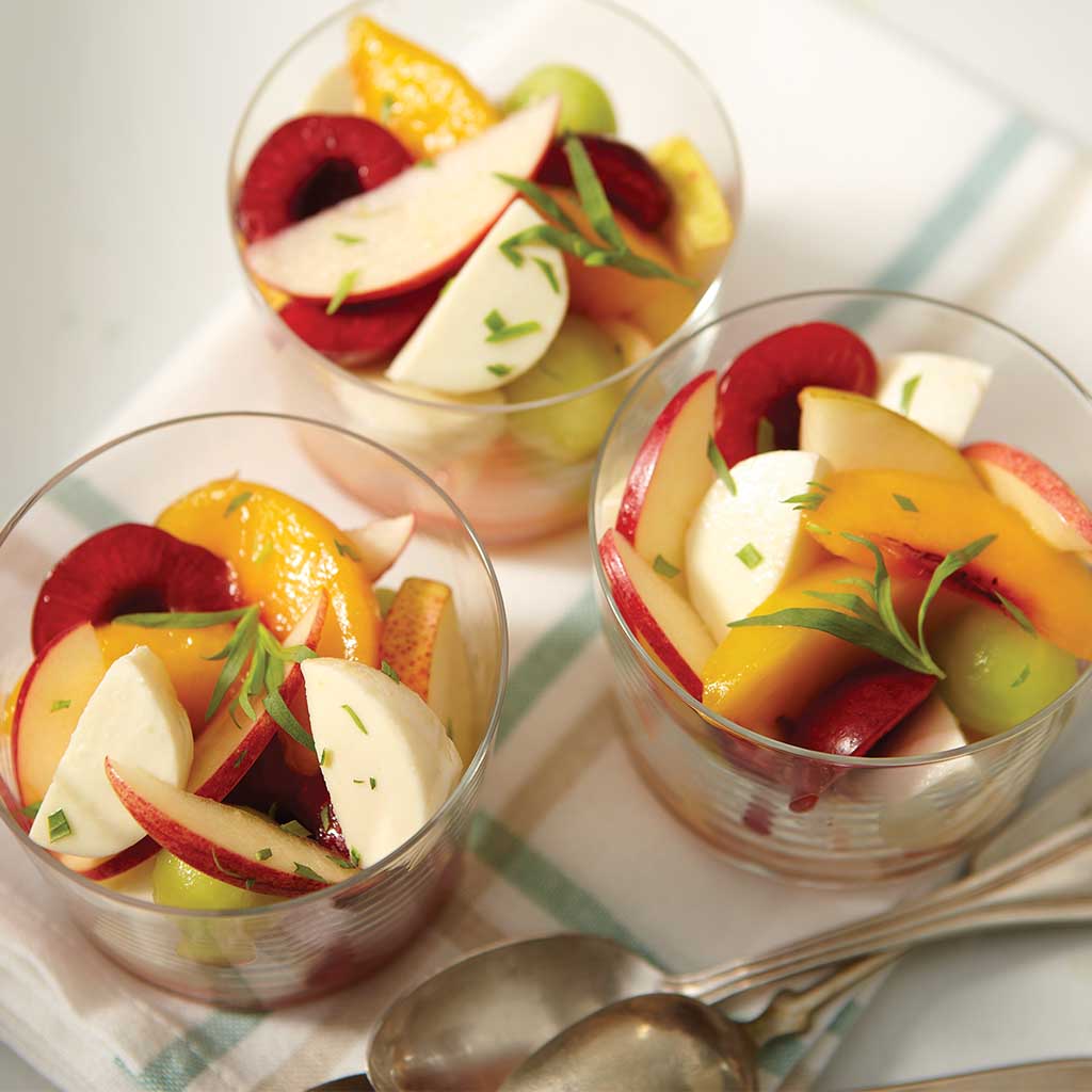 Step 2 In a large bowl, mix fruit, honey, apple juice and tarragon.