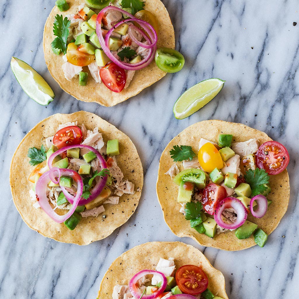 Distribute the tuna mixture evenly on the 4 tostadas. Garnish with cherry tomatoes, avocado, marinated onions and fresh cilantro. Add pepper and serve with lime quarters and hot sauce.