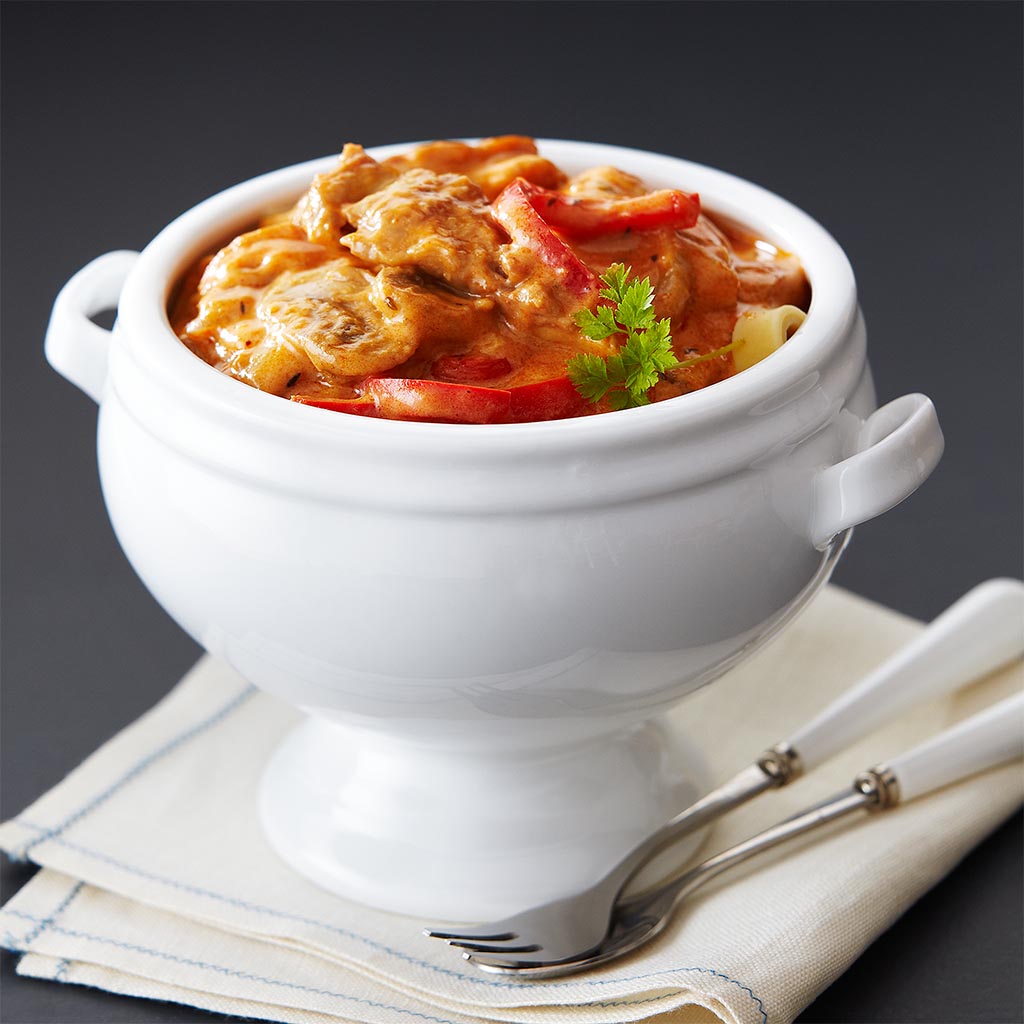 This comforting low carb chicken stew is perfect to warm you up during those chilly fall evenings, or even in the dead of winter. The sour cream gives the goulash sauce a velvety creaminess. A low cal, low fat alternative to most comfort foods.